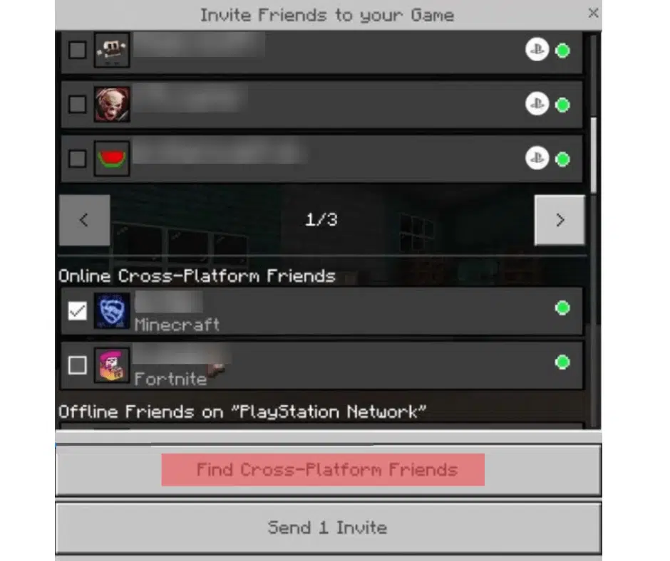 - Select your friend from the list of online cross-platform friends and send an invite. Once they accept your invitation, they’ll join your world.