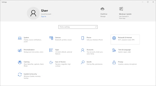 - Click Start > Settings > Network & Internet > Status