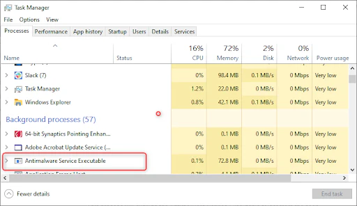 - In the list of processes, locate Antimalware Service Executable, right-click on it, and select Open File Location.