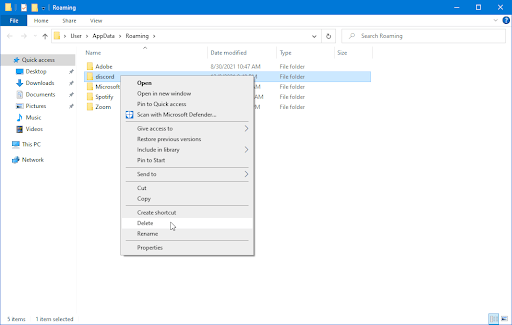 Press the Windows + R keys to open the Run utility. Type %appdata% and hit Enter. This will open the AppData folder in File Explorer. Find the Discord folder, right-click it, and select Delete to remove any leftover files from the previous installation.