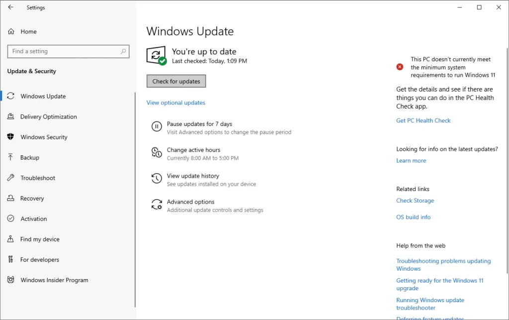 - Click on the Check for updates button and wait for Windows to find available updates.