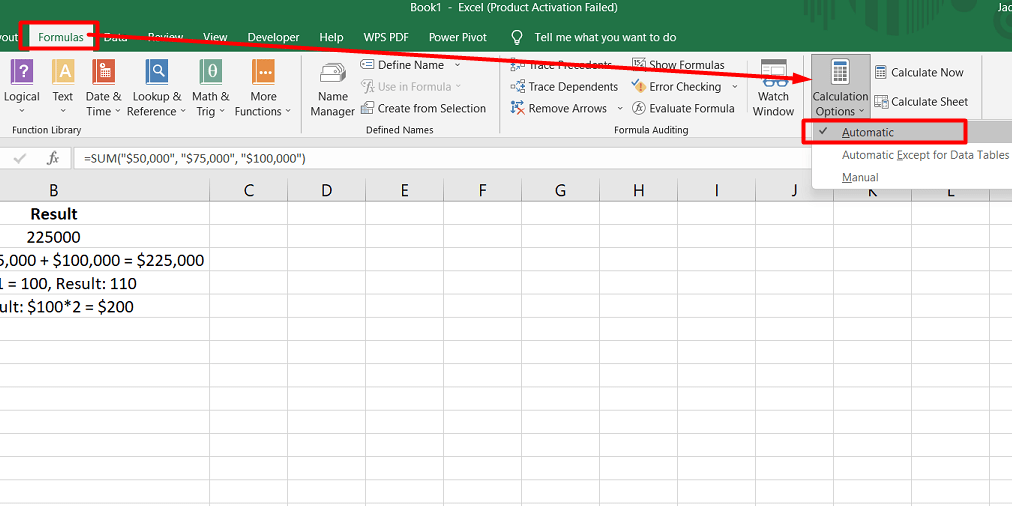 If your formulas aren’t updating and continue to show old values, it’s likely because the Calculation setting is set to Manual instead of Automatic. You need to change it to Automatic to resolve this issue.