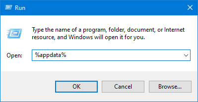 - Press Windows + R on your keyboard to open the Run utility. Type %appdata% and hit OK. This will open File Explorer in a another window.